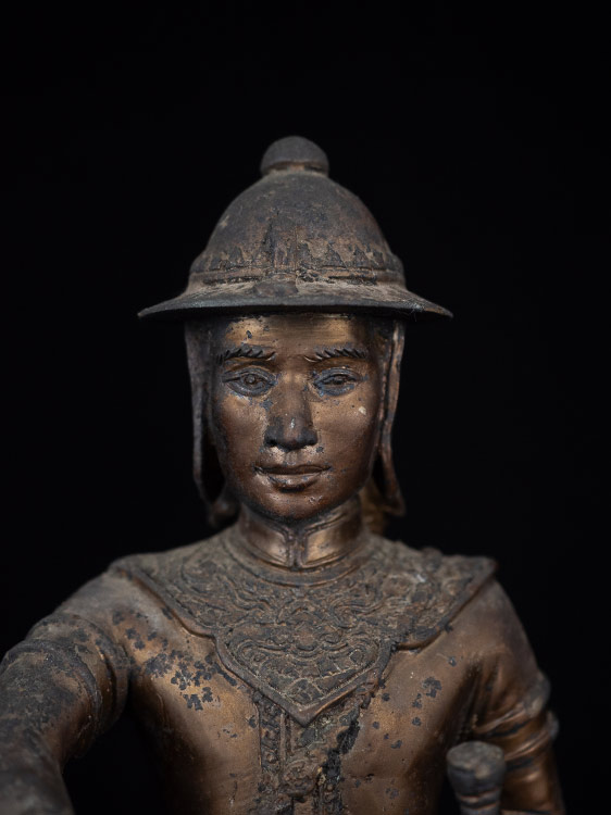 สมเด็จพระนเรศวรมหาราช ทรงประกาศอิสสระภาพ 400 ปี ( ยืนหลั่งน้ำสิโนทก ) ณ.วัดพรหมสุวรรณสามัคคี พ.ศ.2527 สูงรวมฐาน 12 นิ้ว เนื้อโลหะรมมันปู ผิวหิ้ง 2 ถอด !!