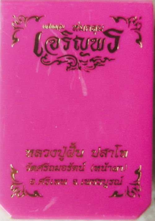 เจริญพร ห่มคลุม หลวงปู่ฝั้น ปสาโท (วัดศรีถมอรัตน์ (หน้าผา) จ.เพชรบูรณ์) เนื้อชนวน ทูโทน ลงยา ธงชาติเฉียง หน้ากากเงิน ลงยาจีวร หมายเลข ๑๒ กล่องเดิม