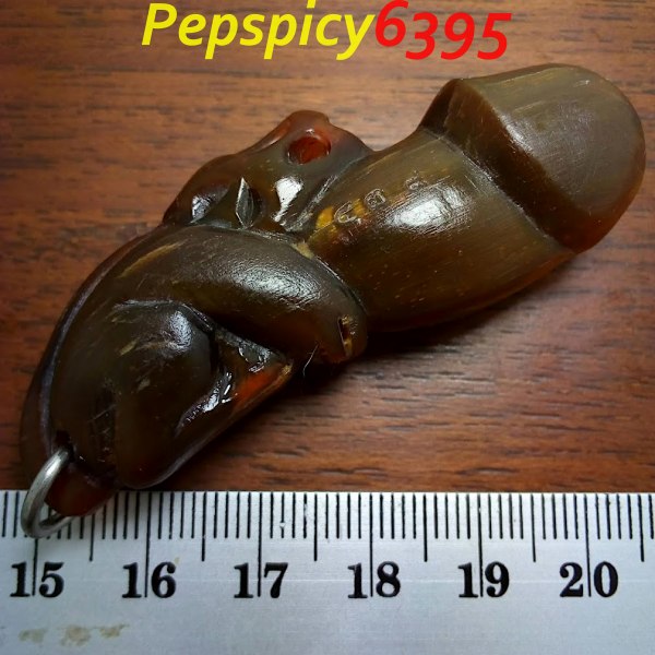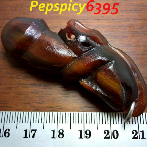 ปลัดขิกเขาควายแกะ ปี 62 ลพ.พัฒน์ เนื้อเขาควายสีน้ำผึ้ง (เขาควายเผือก) แกะเป็นรูปลิงขี่ปลัดขิก พุทธคุณด้านมหาเสน่ห์ เป็นเมตตามหานิยม โภคทรัพย์ โชคลาภ ค้าขายดี