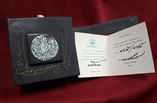 ประติมากรรมหล่อ - กริ่ง - พิฆเนศวร เนื้อนวโลหะ 3.9 ซม. หมายเลข 475 (จัดสร้าง 499 องค์) + บัตรรับรองผลงาน กล่องนอก-ใน ครบชุด