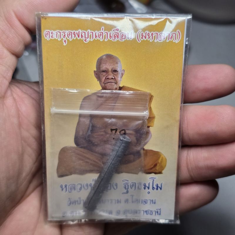 ตะกรุดพญาเต่าเลือน (มหาลาภ) หลวงปู่อ่อง ฐิตธัมโม วัดสิงหาญ จ.อุบลฯ ซองเดิม จารมือ