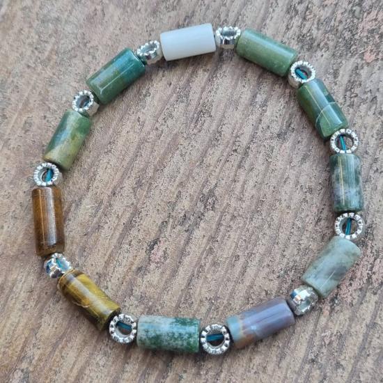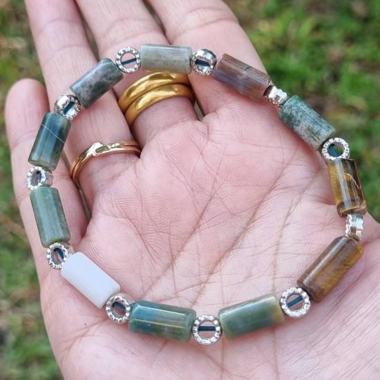 สร้อยข้อมือ หยก (Jade) มอสอาเกต (Moss Agate) อินเดียนอาเกต (Indian Agate) ของแท้