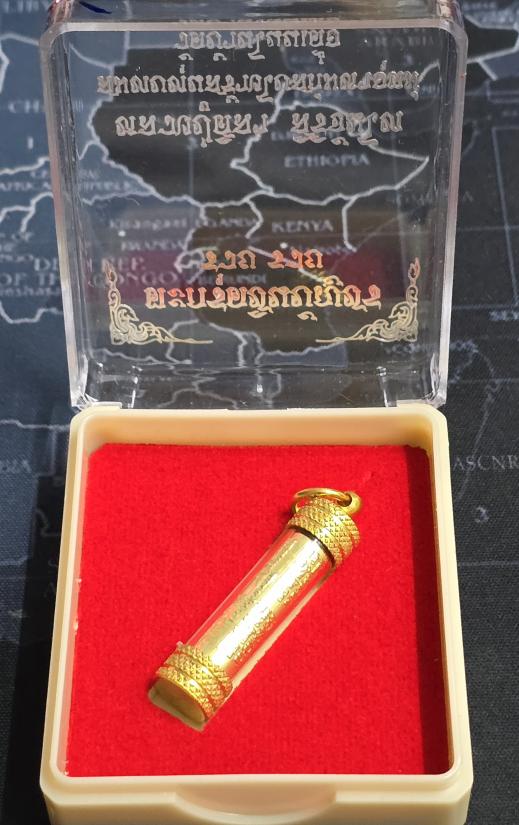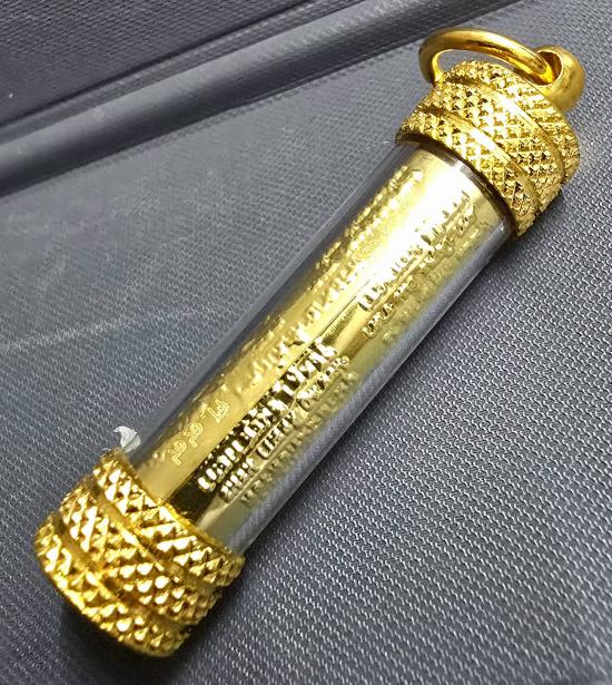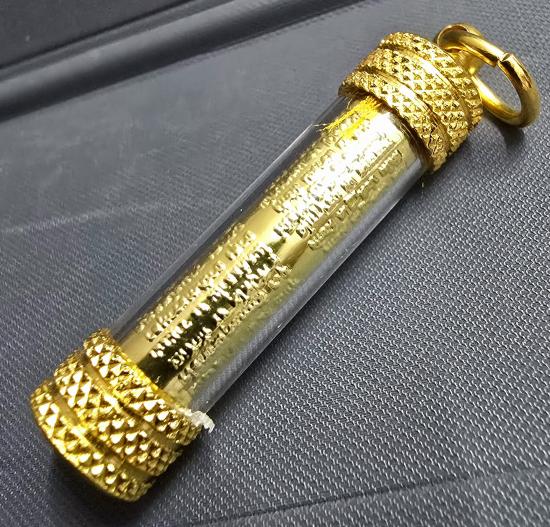 ตระกรุดทองระฆัง ปั้มยันต์หลวงปู่ ใส่หลอดปิดหัวท้ายชุบทอง พร้อมห้อย สวยๆครับ