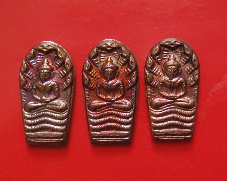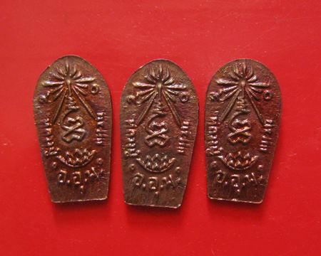 พระปรกใบมะขามหลวงปู่แหวน สุจิณโณ ปี 2521 จำนวน 3 องค์ เนื้อทองแดงรมดำ |