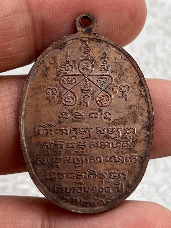 เหรียญกลมใหญ่ พระครูอโศกธรรมสาร วัดปากคลอง จ.เพชรบุรี ครบรอบ ๑๐๔ ปี 2519 เนื้อทองแดง