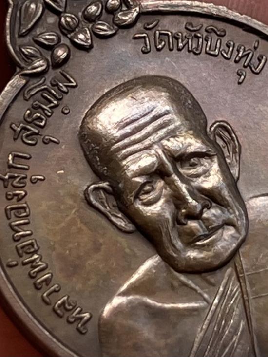 เหรียญรุ่นแรกหลวงพ่อทองสุก วัดหัวบึงทุ่ง จ.นครพนม พ.ศ.๒๕๒๐ เนื้อทองแดง ศิษย์สร้างถวาย ตอกโค๊ต "นะ" ด้านหลังเหรียญ