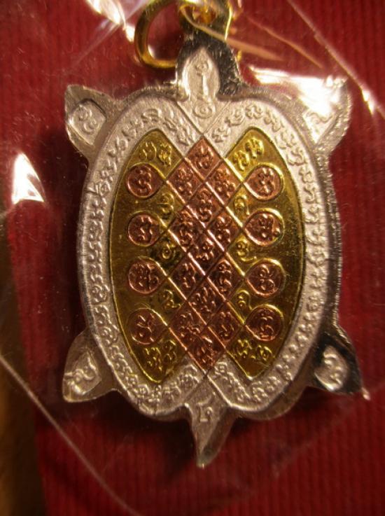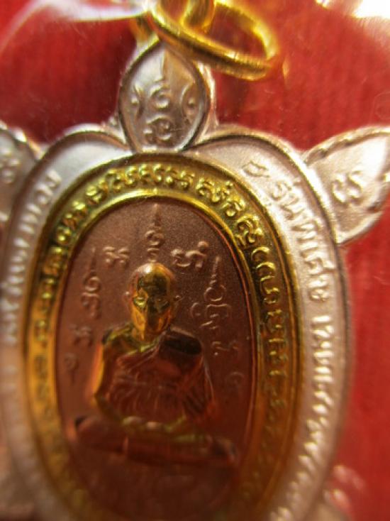 เหรียพาเต่าเรือน หลวงปู่หลิว วัดไร่แตงทอง รุ่นพิเศษเมตตามหาลาภ เนื้อทองแดงกะไหล่สามกษัตริย์ ปี 2540 จ.นครปฐม