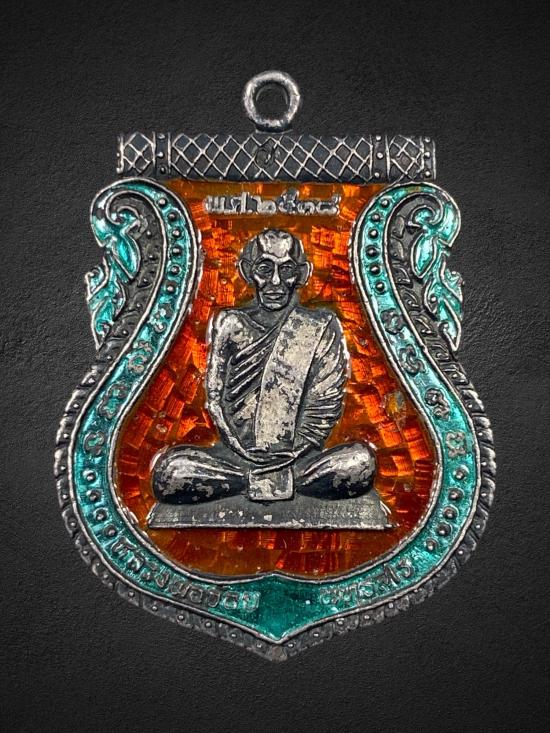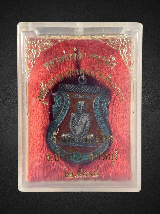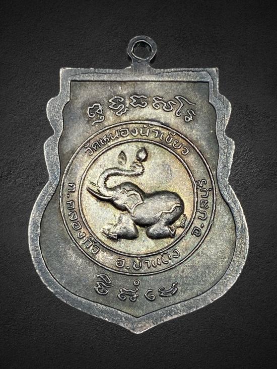 เหรียญเสมาหลังช้าง หลวงพ่อจ้อย วัดหนองน้ำเขียว จ.ชลบุรี ปี38 เนื้อเงินลงยา พิเศษตอก2โค๊ด หายาก กล่องเดิมครับ