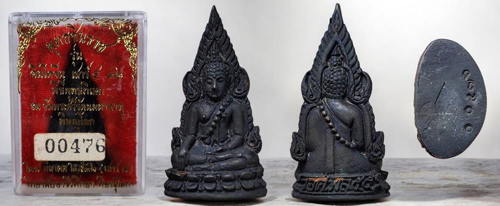 ใต้ฐานตอกโค้ดอกเลา โค้ดธรรมจักร และหมายเลขกำกับทุกองค์ รูปแบบทรงโดยทั่วไปจะเหมือนกับชินราช รุ่นอินโดจีน ที่ออกปี พ.ศ.2485 เพราะเป็นพิมพ์ย้อนยุค เจตนาการสร้างดี พิธีดีและยิ่งใหญ่ เกจิมายมายปลุกเสกตรงกับ เสาร์ 5 ครับ