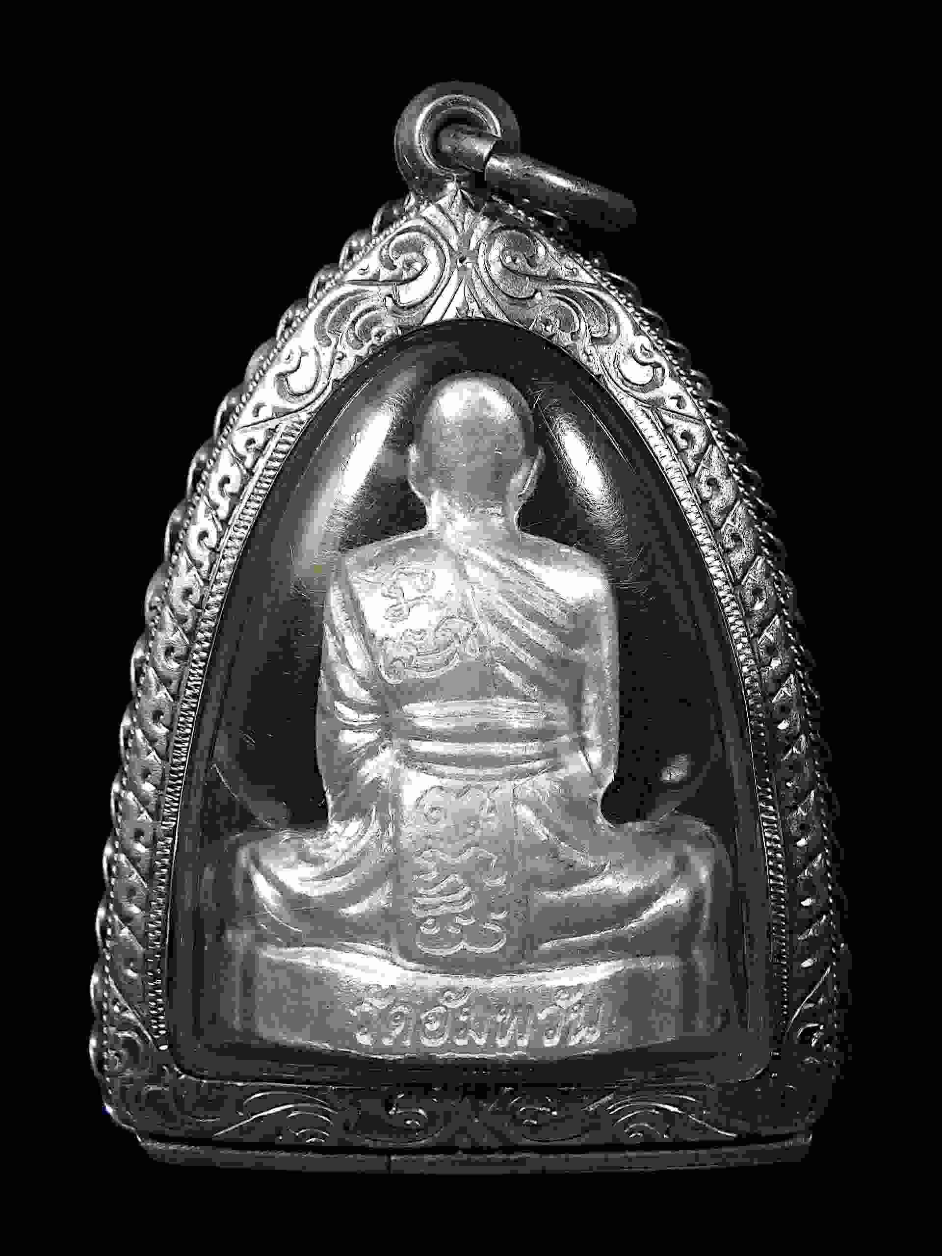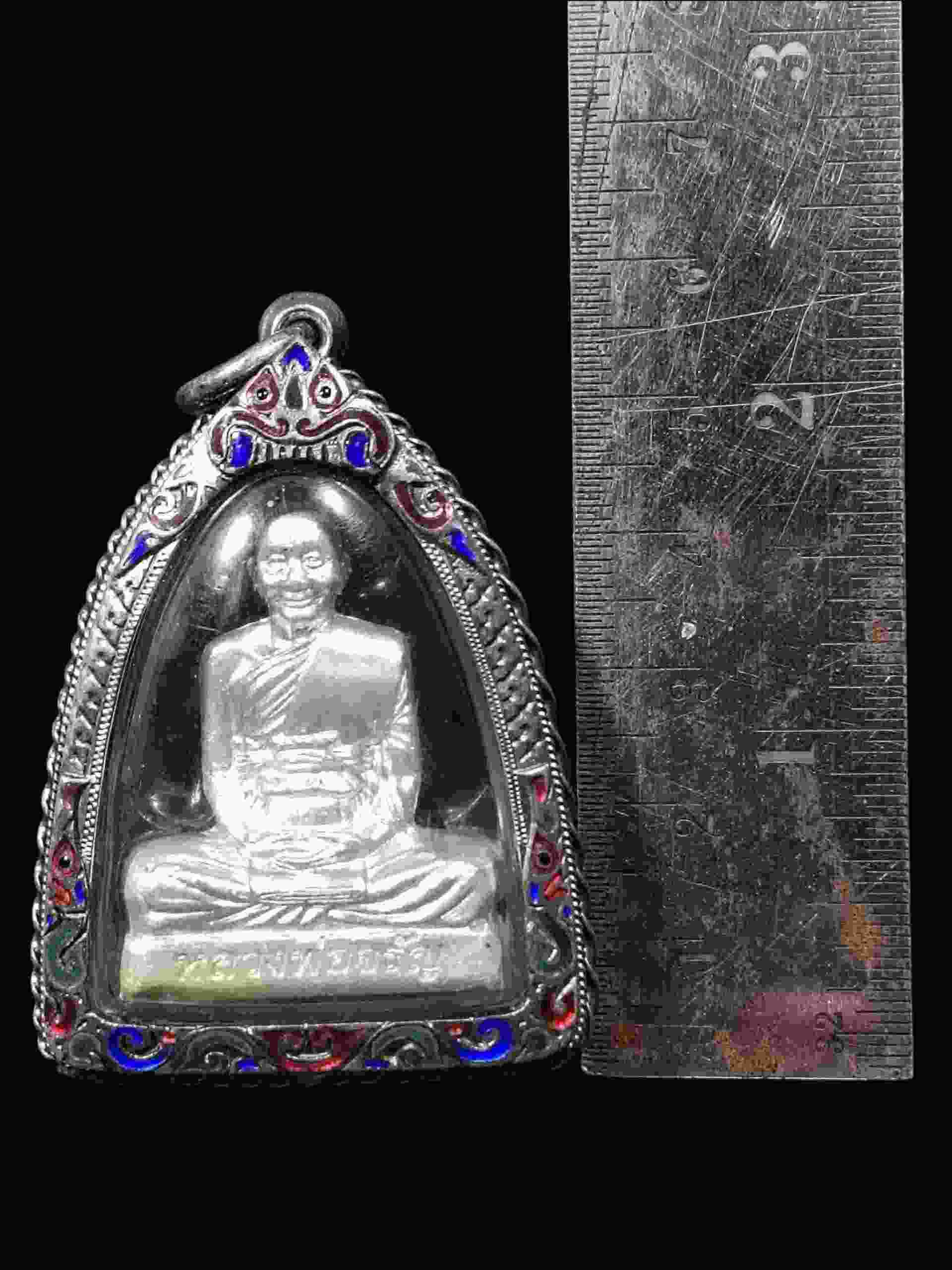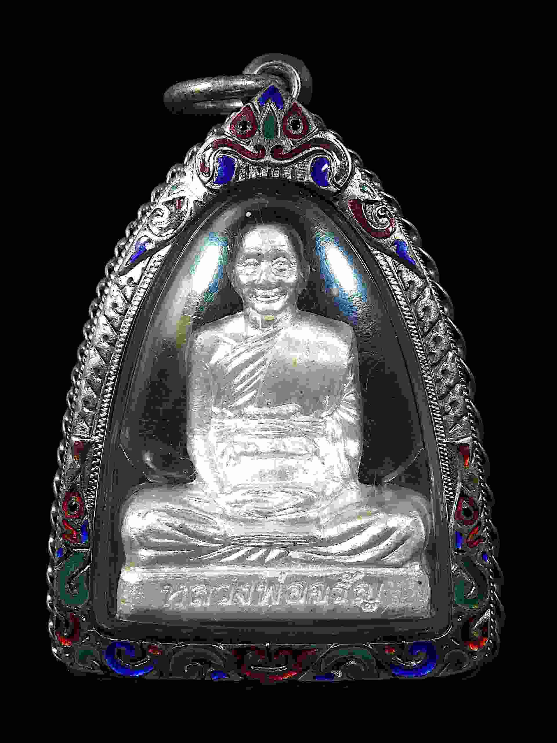 รูปเหมือนปั้มพิมพ์เข่ากว้าง หลวงพ่อจรัญ วัดอัมพวัน จ.สิงห์บุรี รุ่นเจริญพร เนื้อเงินสร้างปี ๒๕๕๔ พร้อมตลับเงินหนา ๆ สวย ๆ ครับ