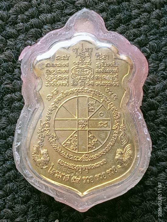 เหรียญเสมา รุ่นไตรมาส59 อายุ 95 พ.ศ2559 รวย รวย รวย หลวงพ่อรวย วัดตะโก อ.ภาชี จ.อยุธยา เนื้อทองทิพย์