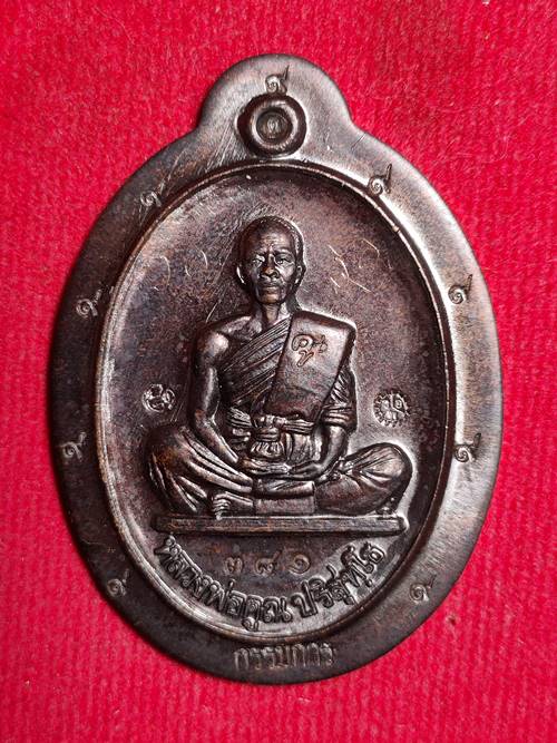 เหรียญประสบการณ์ หลวงพ่อคูณ รุ่น ย้อนยุครุ่นสร้างบารมี ปี 19 ออกวัด ใหม่อัมพวัน ปี 54 เนื้อ ทองแดงรมมันปูพิมพ์กรรมการไม่ตัดปีกหลังแบบ หมายเลข 381 ตอกโค๊ตเลข 9 เก้าตัว มีจาร สภาพสวย เคาะเดียวแดง