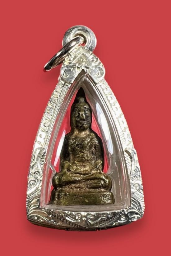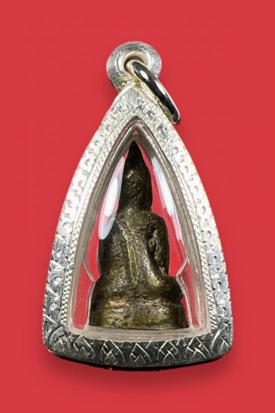 พระชัยวัฒน์ หลวงพ่อแจ่ม วัดด่านสำโรง 2498 จ.สมุทรปราการ (ลป.เผือก วัดกิ่งแก้ว เป็นประธานปลุกเสก) เลี่ยมเงิน