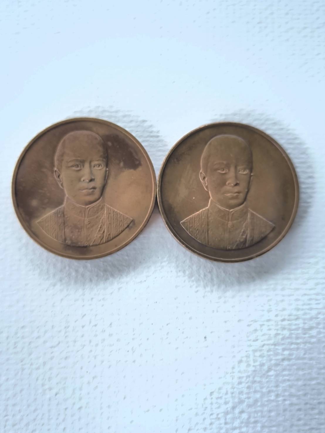 เหรียญที่ระลึกพระพุทธเลิศหล้านภาลัย รัชกาลที่ 2 หลังครุฑ พ.ศ. 2539 บล็อกกษาปณ์ เนื้อทองแดง จำนวน 2 เหรียญ