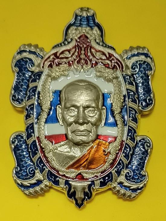 ลพ.พัฒน์ วัดห้วยด้วน เหรียญเต่าอัลปาก้า ลงยาลายธงชาติ รุ่นพญาเต่ามังกรโคตรเศรษฐีปี๖๕