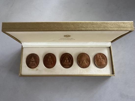 #เคาะเดียว เหลือชุดสุดท้าย#หรียญพระพุทธปัญจภาคี หลังในหลวงรัชกาลที่ 9 แบบพิมพ์ใหญ่ ครบชุด 5 เหรียญ เนื้อทองแดง ปี 2539 พร้อมกล่องเดิม |