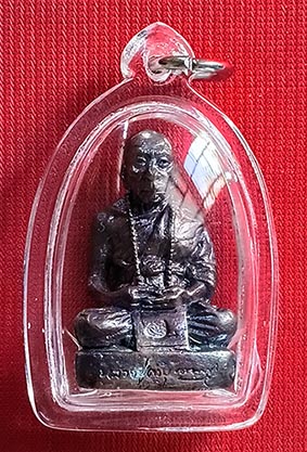 หลวงปู่คำบุ ลอยองค์ เนื้อโลหะรมดำ ไม่ทราบรุ่น สวยมากโค้ต89ใต้ฐาน เลี่ยมพร้อมบูชา ไม่มีกล่อง