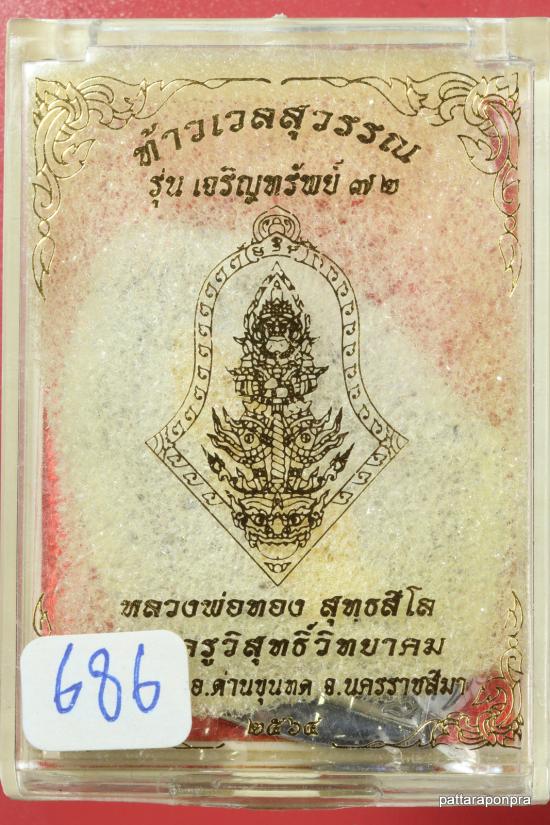 เหรียญท้าวเวส หลวงพ่อทอง รุ่นเจริญทรัพย์ ปี 2564 เนื้อตะกั่วหน้าทองฝาบาตร หมายเลข 686