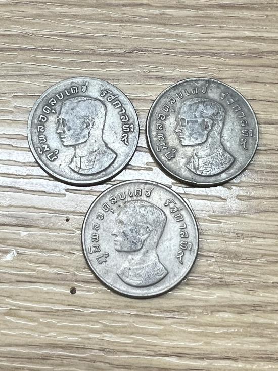 +++ เหรียญ 1 บาท มหาบพิธ เหรียญครุฑปี 17 ผ่านใช้ จำนวน 3 เหรียญ +++6