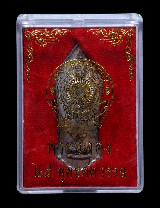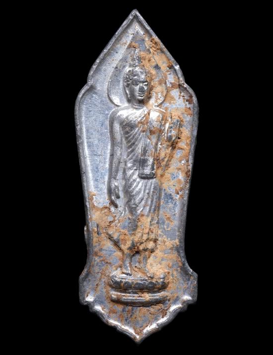พระลีลา 25 พุทธศตวรรษ เนื้อตะกั่ว บล็อกพระศกจุด ปี 2500 มีกล่อง แดงเคาะแรก