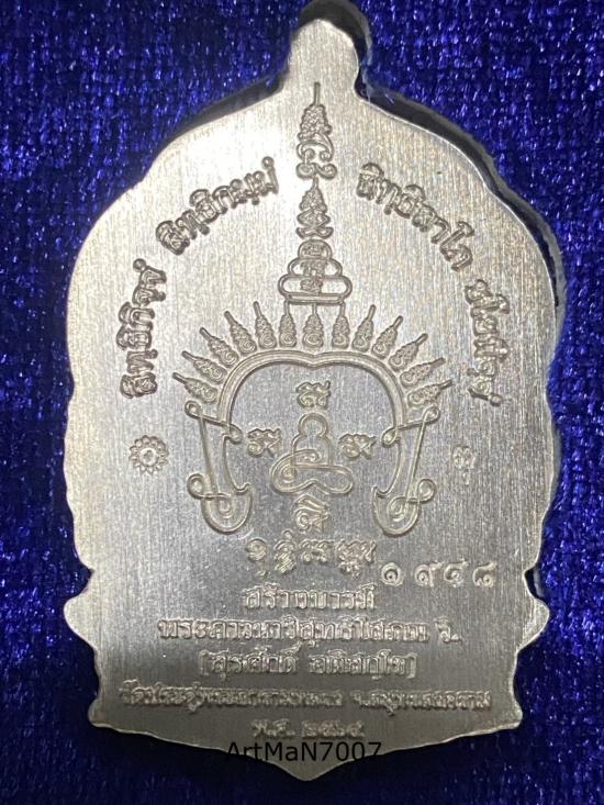เหรียญนั่งพาน "รุ่นสร้างบารมี" พระมหาสุรศักดิ์ วัดประดู่ จ.สมุทรสงคราม เนื้อเงิน หมายเลข 1948 พร้อมกล่อง