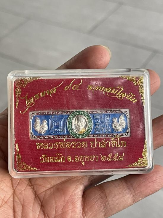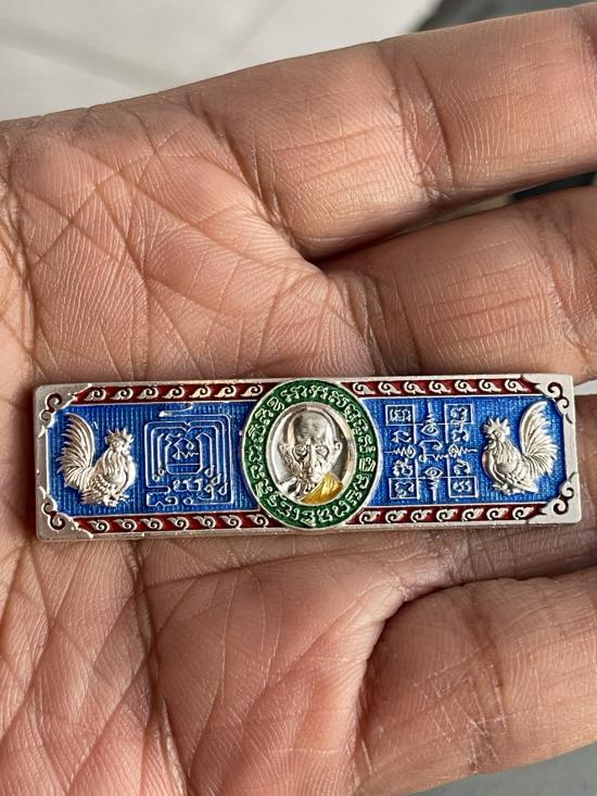 หลวงพ่อรวย วัดตะโก จ.อยุธยา หัวเลสรุ่นรวยสมใจนึก ปี58 เนื้อเงินลงยา ขนาด4บาท