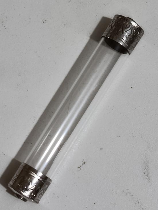 ปลอกตะกรุดเงินแท้ชุบทองคำขาว แบบหัวจรวดร้อยสร้อย งานสั่งทำขนาดโต 1.4 ซมยาว 1.1 ซม ใส่ตะกรุดหลวงปู่เอี่ยม วัดสะพานสูง หลวงปู่ศุข พร้อมหลอดพลาสติกเปลี่ยนได้ |