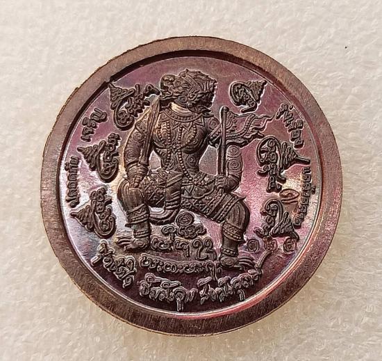 เหรียญโชคดี หลังหนุมาน เนื้อทองแดงประกบทองทิพย์ (ขนาดเหรียญ๕บาท) รุ่นเฮงพันล้าน ปี๖๘ วัดหนองปรือ ปักธงชัย มีพระอาจารย์ต้อม,สุริยันต์,เวิน,ธรรมดล ปลุกเสก โค๊ต-เลข สวยชัด รับประกันครับ