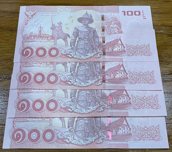 ++++430++++ธนบัตร100บาท เลขเรียง 4ฉบับ ไม่ผ่านใช้ ไม่พับ/งอ ขาวสวย |