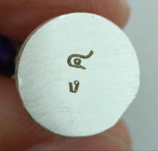 ชื่อพระเครื่อง วัดใจเคาะเดียวแดงจ้า รูปหล่อพระพิฆเนศ เนื้อเงินลงยาม่วง ฝังพลอย ขนาด3.9เซน เคาะเดียวแดงจ้า