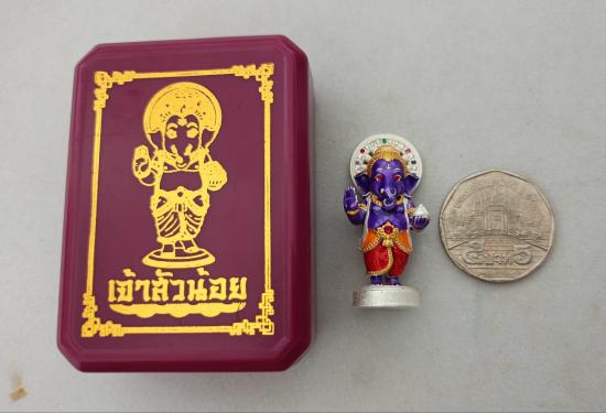 วัดใจเคาะเดียวแดงจ้า รูปหล่อพระพิฆเนศ เนื้อเงินลงยาม่วง ฝังพลอย ขนาด3.9เซน เคาะเดียวแดงจ้า
