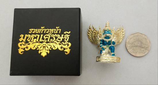 วัดใจเคาะเดียวแดงจ้า พญาครุฑ หลวงพ่อพัฒน์ วัดห้วยดัวน เนื้ออาบเงินลงยาน้ำเงิน เคาะเดียวแดงจ้า