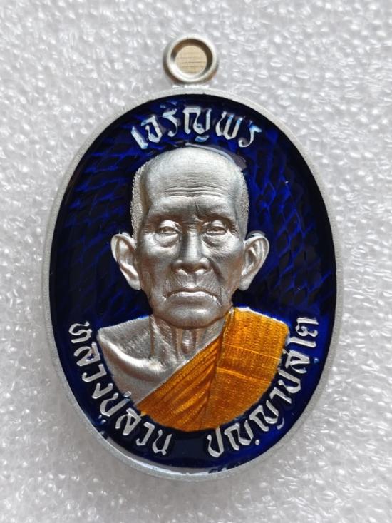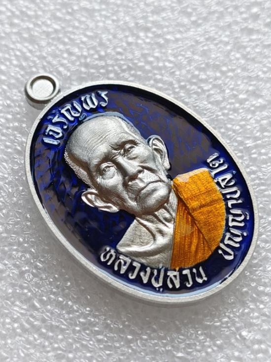 เหรียญเจริญพร รุ่นแรก หลวงปู่สวน วัดวังทรายพูน จ.พิจิตร เนื้อปีกเครื่องบิน ลงยาน้ำเงิน ลงยาจีวร สภาพสวย พร้อมกล่องเดิมครับ
