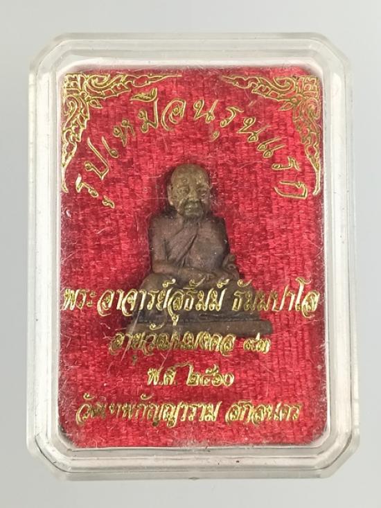 รูปหล่อรุ่นแรกหลวงปู่สุธัมม์ ธัมปาโล วัดเทพกัญญาราม อำเภอเมือง จังหวัดสกลนคร. เนื้อโลหะใต้ฐานอุดผงพุทธคุณ กล่องเดิม