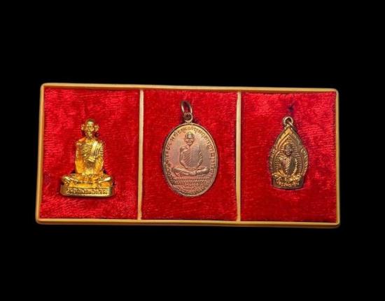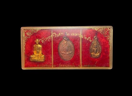พระชุดหลวงพ่อเดิม วัดหนองโพธิ์ ออกวัดหนองบัว ปี2526 หนึ่งชุ ดจำนวน 3 องค์ครับสภาพสวยเดิมๆ จากวัดพร้อมกล่อง