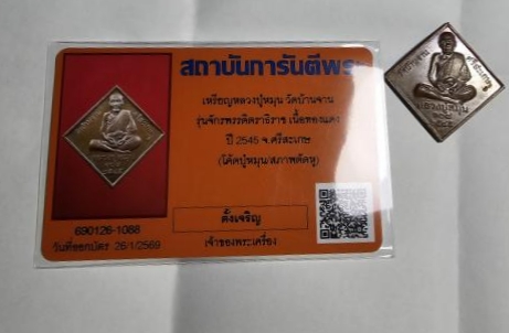 เหรียญพรหมสี่หน้าหลวงปู่หมุน จักรพรรดิตราธิราช ปี45 เนื้อทองแดง ตอกโค้ด (ตัดหูเหรียญ) มาพร้อมบัตร