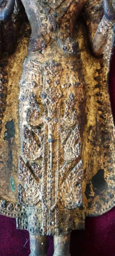 พระรัตนะ ปางโปรดพระยาชมพูบดี (นิยมสุด) เนื้อสำริด หรือทองเหลือง ลงรักปิดทองล่องชาดเดิม ๆ หล่อ 2 ขอบ (ยุคต้น) ใต้ฐานดินไทยวรรณะสองสี มีแกนหุ่นพระชัดเจน สูงประมาณ 19 นิ้ว (เลขมงคลที่นิยมสุด) เนื้อเก่า ทองเก่า ดูเข้มขลัง งามมากครับ สภาพตามรูป แท้ดูง่าย ส่งฟรีทั่วไทย รับประกันตามกฏครับ