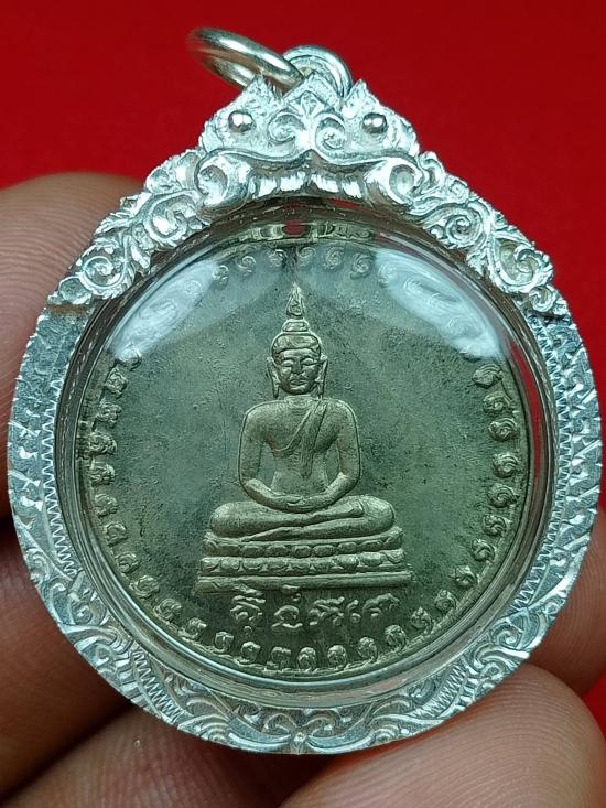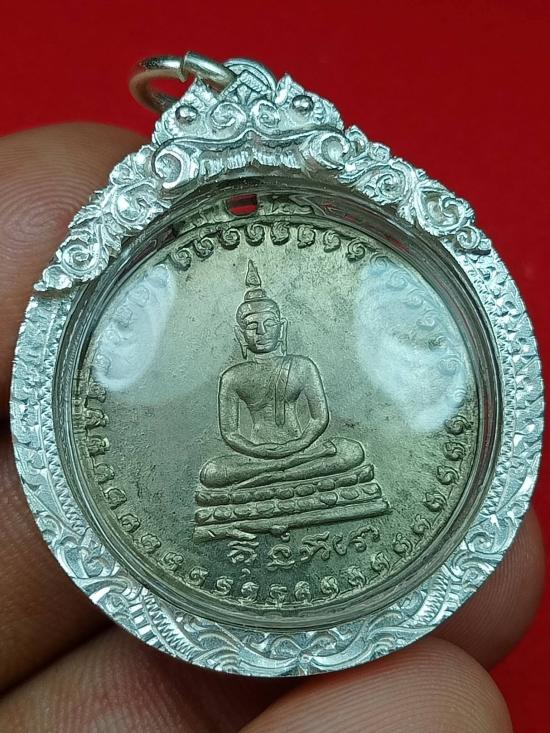 เหรียญอังคีรส หลังปิดตา เนื้ออัลปาก้า วัดจุฬามณี ปี2516 จ.ระยอง สภาพสวยผิวเดิมๆ พร้อมเลี่ยมเงินงานมืออย่างดี
