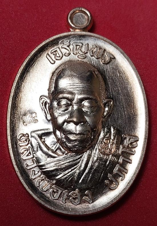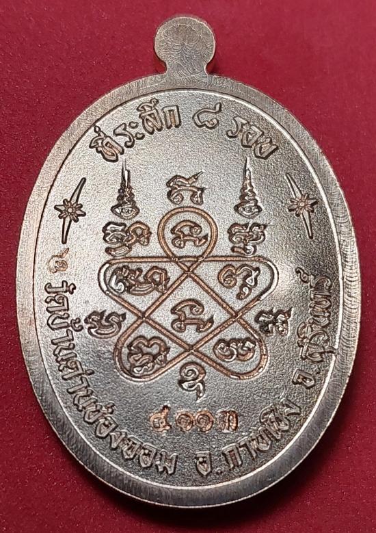 หลวงปู่เฮง ปภาโส รุ่นเจริญพร 8 รอบ เนื้อกะไหล่นาค ตอกศาลา หลังยันต์เต็ม ตอกเลข 4113 เคาะเดียว