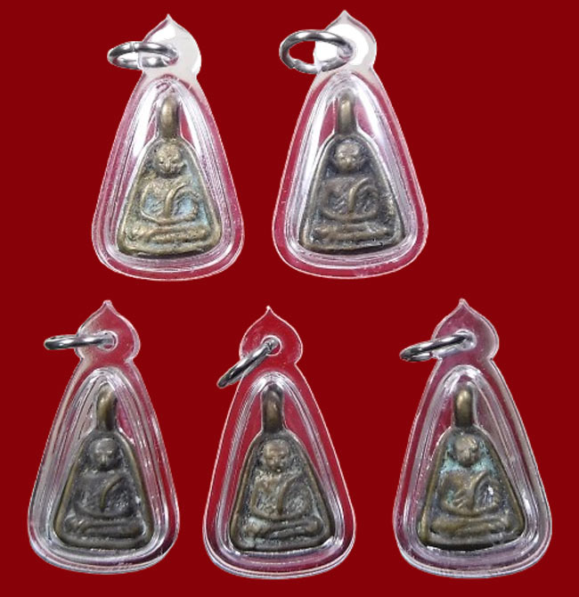 แดงที่เคาะแรก !!! 5 องค์ ... เหรียญจอบ หลวงพ่อเงิน วัดบางคลาน (ตอกโค๊ตด้านหลัง) + เลี่ยมกันน้ำและกล่องเดิม