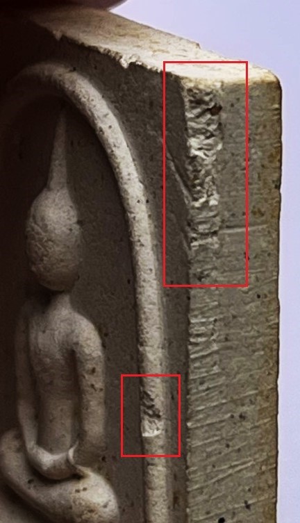 - สมเด็จเจริญลาภ กระเทาะซุ้มขวา+กระเทาะขอบหลายที่ตามภาพด้านล่าง