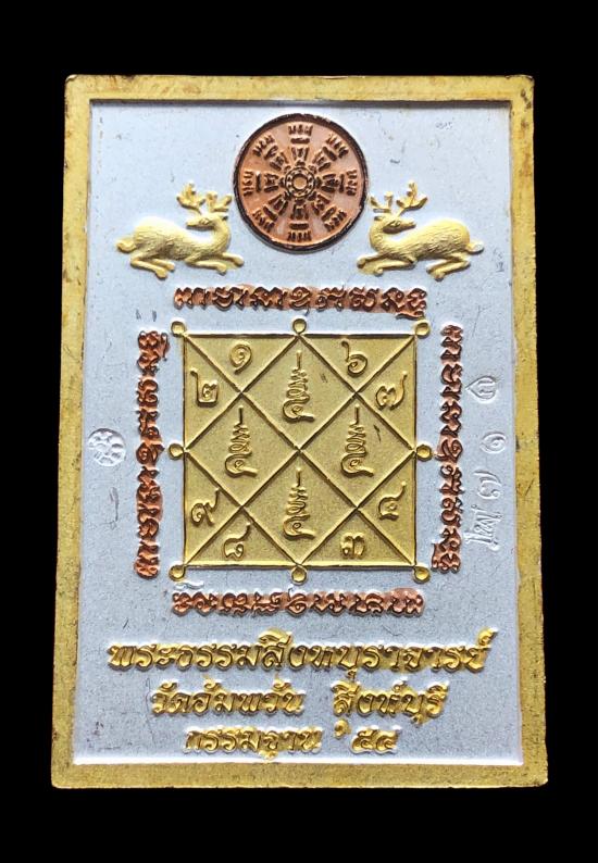 เหรียญโต๊ะหมู่ รุ่น กรรมฐาน ๕๔ เนื้อสามกษัตริย์ หลวงพ่อจรัญ วัดอัมพวัน จ.สิงห์บุรี จัดสร้างปี ๒๕๕๔ หมายเลข ๗๑ กล่องเดิม
