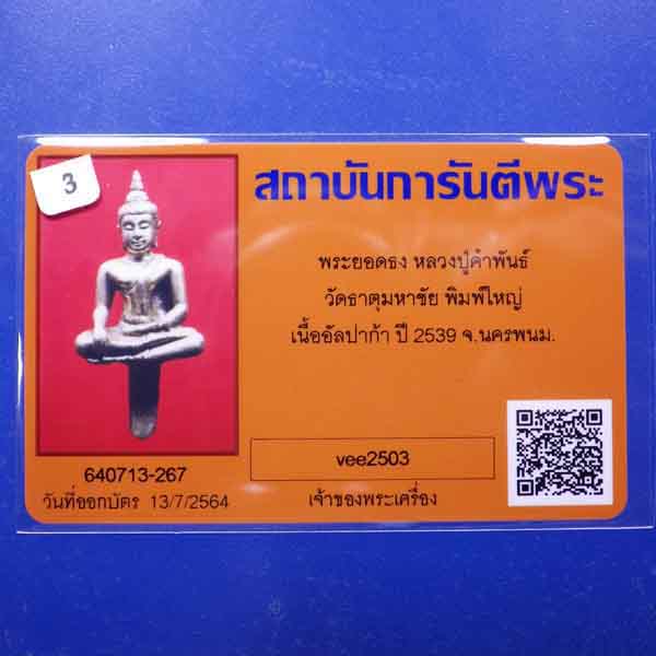 พระยอดธง หลวงปู่คำพันธ์ พิมพ์ใหญ่ วัดธาตุมหาชัย เนื้ออัลปาก้า ปี2539....3...64.8.1