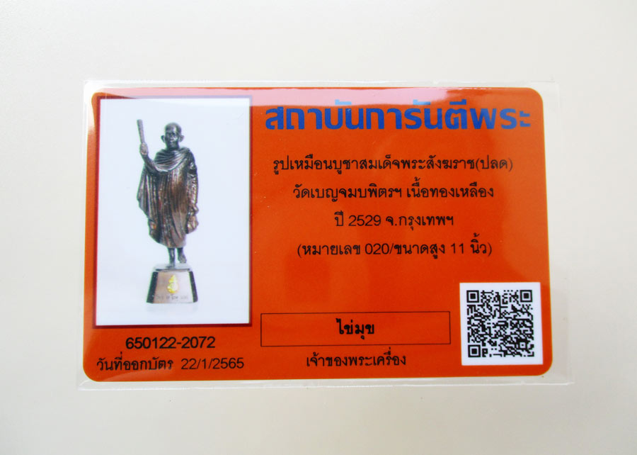 พระบูชาสมเด็จพระสังฆราชองค์ที่ 14 แห่งกรุงรัตนโกสินทร์ ( ปลด กิตติโสภณมหาเถระ ) วัดเบญจมบพิตร พ.ศ.2529 เนื้อโลหะรมมันปู ผิวหิ้ง พร้อมบัตรรับรองการันตีพระ !!