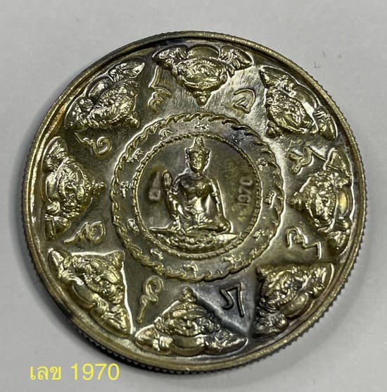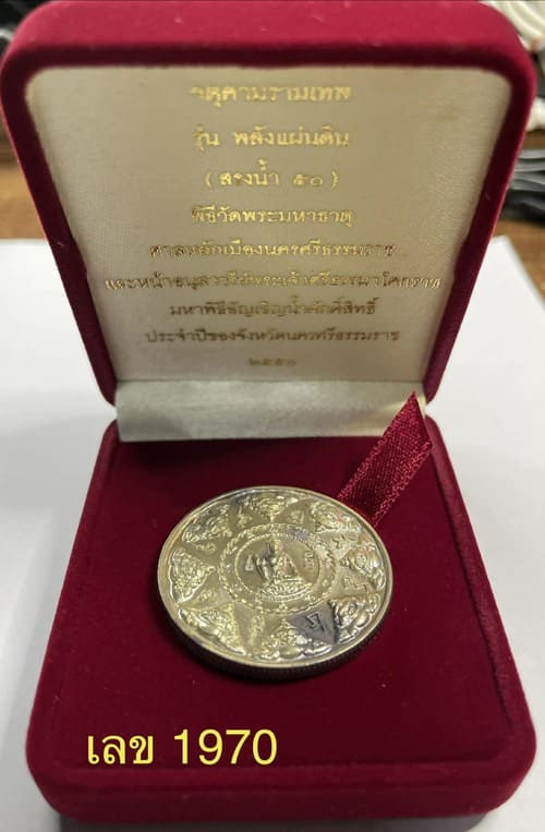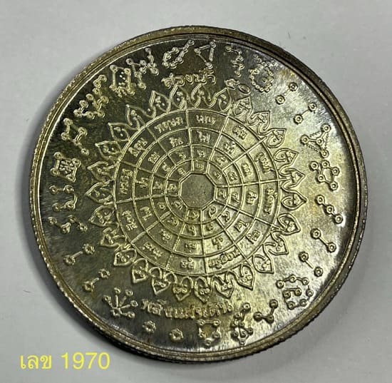 เหรียญจตุคามรามเทพเนื้อเงิน หลังพลังจักรวาล พิธีใหญ่ รุ่นพลังแผ่นดิน สรงน้ำปี 50 เลข 1970 สภาพสวย ขนาด 3.2 ซม.ขอบสตางค์