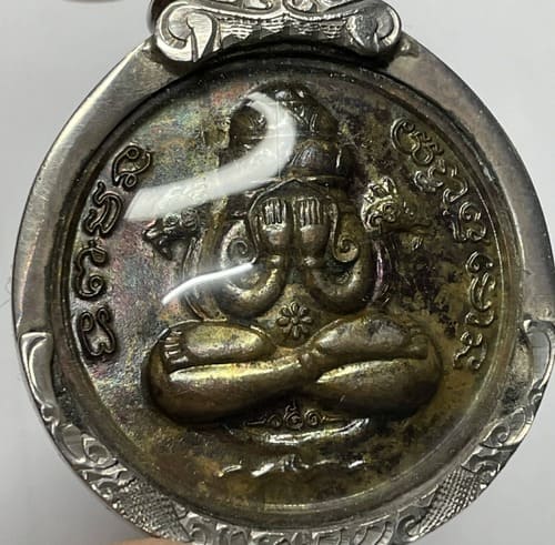 เหรียญปิดตาพังพะกาฬ รุ่นขุมทรัพย์ ทอดน้ำมันเสือผสมว่าน 108 ปี 2549 โค๊ดเจดีย์ สภาพสวยผิวเหลือบ ๆ เลี่ยมเงินพร้อมบูชา จาก20องค์ที่มี องค์นี้เป็นองค์ที่คัดเลี่ยมเงินไว้บูชาเองเป็นองค์สุดท้าย