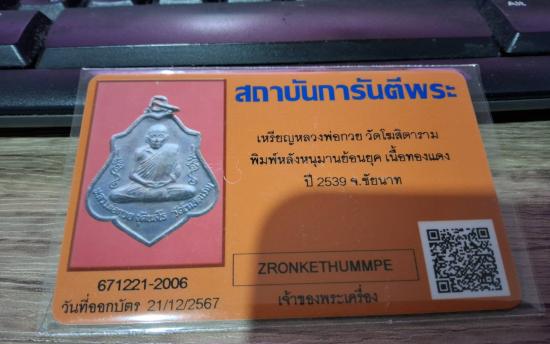 เหรียญ หลวงพ่อกวย วัดโฆสิตาราม ปี2539 หลังหนุมาน เชิญธง รมดำ พร้อมกล่องเดิม แท้ๆ100%