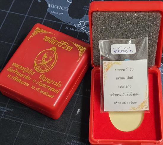 เหรียญรุ่น"พลิกชีวิต" หลวงปู่เถิง ปัญญาวโร วัดบ้านอาลัย ศรีสะเกษ เหรียญเพ้นทั้งองค์ เพ้นลายวัด หน้ากากเงิน ชุบน้ำทอง สร้างเพียง 60 องค์ หมายเลข ๑๙...พร้อมกล่อง