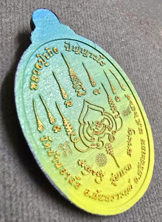 เหรียญเพ้นทั้งองค์ เพ้นลายวัด หน้ากากเงิน ชุบน้ำทอง