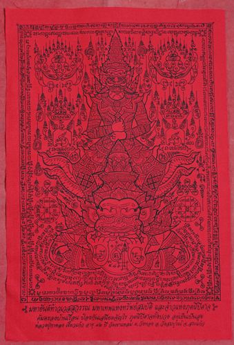 ขนาด 13X19 นิ้ว เป็นผ้ายันต์ในพิธี ไม่มีตราปั๊มและหมายเลข